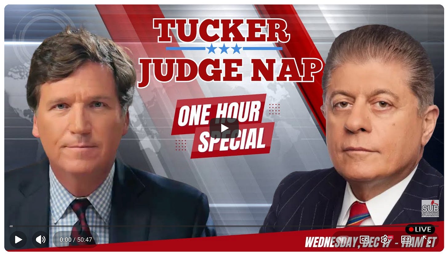 I wasn’t aware Judge Andrew Napolitan has a podcast. But Tucker showed up today as a guest on ‘Judging Freedom,’ and now I have another quality outlet for interesting conversations about truth, liberty and constitutional integrity.